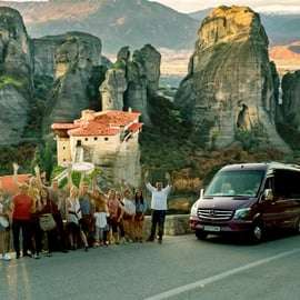 **El viaje:** A las 8:00 de la mañana, partiremos desde la estación de Larissa en Atenas en un cómodo autobús con aire acondicionado. Tras una breve parada en ruta, llegaremos a Kalabaka alrededor de las 13:00. Allí, te esperará tu guía local y el minibús para comenzar la excursión exclusiva a Meteora.
