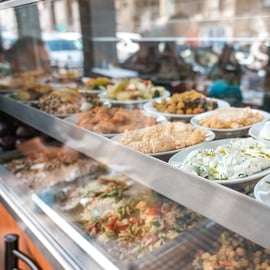 La experiencia continúa en el casco antiguo, donde te esperan auténticas tabernas que sirven "meze", la versión griega de las tapas. Finaliza tu recorrido con un delicioso souvlaki, el emblemático pan de pita griego relleno de jugosos gyros de cerdo o pollo. ¡Un final perfecto para una aventura gastronómica inolvidable!