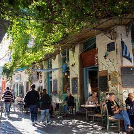La aventura continúa en una pastelería histórica, famosa por su delicioso baklava y otros dulces griegos bañados en almíbar. Después, disfrutaremos de un auténtico souvlaki en un encantador asador.
