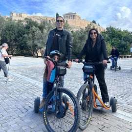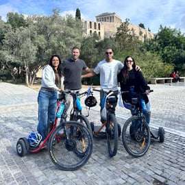 Súbete a tu bici eléctrica de tres ruedas y emprende un delicioso viaje por los sabores más emblemáticos y los miradores más impresionantes de Atenas. Empieza explorando las encantadoras calles de Plaka y los rincones encalados de Anafiotika, un barrio escondido de estilo isleño bajo la Acrópolis.