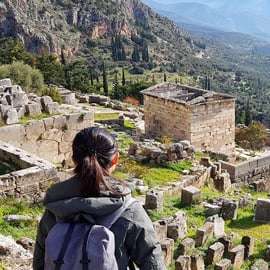 Descubre Delfos desde Atenas con un guía experto de habla española. Escucha mitos, contempla ruinas antiguas, visita pueblos y explora el famoso yacimiento arqueológico de Delfos.