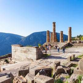 Haz una breve parada en la ciudad de Livadia antes de llegar al yacimiento arqueológico de Delfos. Pasea por las ruinas, contempla el antiguo teatro y disfruta de las impresionantes vistas de las montañas. En el Templo de Apolo, descubre los importantes rituales y creencias de los antiguos griegos.