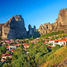 ¡Asómbrate con los monasterios encaramados en las alturas de Meteora, un tesoro declarado Patrimonio Mundial por la UNESCO! Descubre el encanto de la pequeña villa de Kastraki y, en tu regreso por las Termópilas, contempla el imponente monumento a Leónidas.