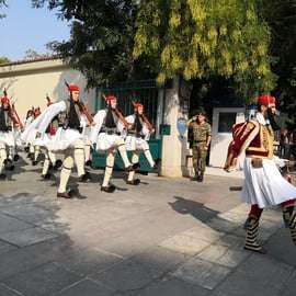 Recorre las calles más elegantes, contemplando el Parlamento griego y la imponente guardia presidencial. Descubre un oasis de tranquilidad en el centro de la urbe: la residencia del primer ministro y el majestuoso Estadio Panatenaico, escenario de los primeros Juegos Olímpicos modernos. Imagina la vida en la primera villa olímpica, apreciando su arquitectura y la belleza de sus frescos.
