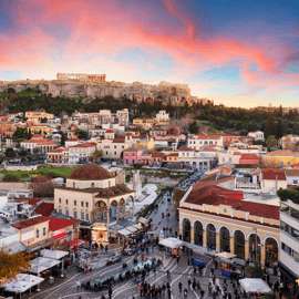 Disfruta de un paseo por Plaka, el barrio más antiguo de la ciudad, conocido por sus pintorescas calles y su encanto tradicional, y por Monastiraki, famoso por su animado ambiente y sus mercados locales. El tour termina con unas impresionantes vistas panorámicas desde el monte Licabeto, el punto más alto del centro de Atenas.