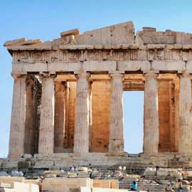 Tu recorrido comienza en la legendaria Acrópolis, hogar del Partenón y símbolo atemporal de la Grecia clásica. Continúa hasta el templo de Zeus Olímpico, el templo más grande de la antigua Atenas, y admira el Arco de Adriano, que marca el límite entre las ciudades antigua y romana. Visita el estadio Panathinaikó, el único estadio del mundo construido íntegramente en mármol, donde se celebraron los primeros Juegos Olímpicos modernos.