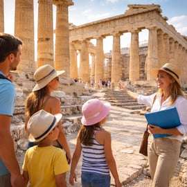 «Acrópolis y el Partenón para familias» es una experiencia guiada prémium pensada para padres que quieren una visita fácil y totalmente organizada, sin estrés, colas largas ni logística complicada, y que a la vez mantenga a los peques realmente interesados de principio a fin.
