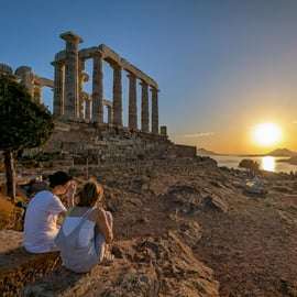 Tour privado a Sunión: solo para tu grupo (hasta 4 personas) con total flexibilidad. Templo de Poseidón, baño y cena junto al mar. Fotografía profesional incluida para que te lleves recuerdos inolvidables.