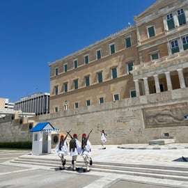 Por último, nos detendremos en la Tumba del Soldado Desconocido, situada frente a la impresionante Casa del Parlamento. Allí podrás presenciar la ceremonia del Cambio de Guardia, un homenaje simbólico a los soldados caídos. Mejora tu experiencia dando un delicioso paseo por las encantadoras calles de Plaka, uno de los barrios más antiguos de Atenas.