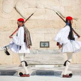 Atraviesa la histórica Plaza Syntagma y presencia el ceremonial Cambio de Guardia en la Mansión Presidencial.
